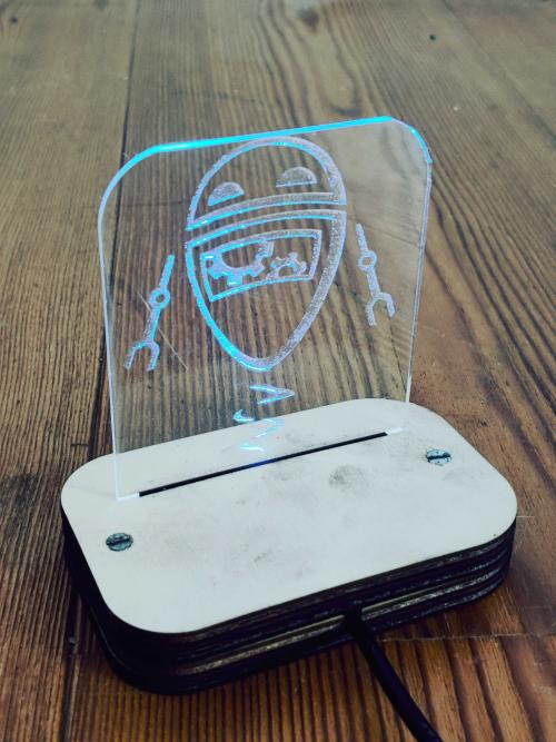 - Kreatives Design & Technik: Auf eine Acrylglasplatte wird ein Halloween-Geist gelasert. Das Motiv wird in einen Sockel mit Arduino Nano und LED-Streifen eingesetzt.