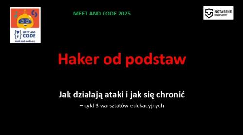 W ramach inicjatywy Meet and Code 2025 zrealizowany zostanie cykl trzech wydarzeń w postaci warsztatów edukacyjnych pt. Zagrożenia bezpieczeństwa pokoju na świecie – „HAKER OD PODSTAW”, poświęcony współczesnym zagrożeniom cyberbezpieczeństwa i ich wpływowi na bezpieczeństwo światowe.