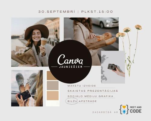 Pasākuma mērķis ir iepazīstināt jauniešus ar www.canva.com (bezmaksas versiju), iedrošināt tos pamēģināt ērti pieejamu rīku modernu vizuālo materiālu izveidošanai īsā laikā, bez speciālām iemaņām ( CV, mācību prezentācijas, infografika, sociālo tīklu maketi, logo izstrāde un t.t.)