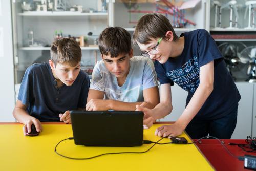 Arduino ist ein kleiner Mikrocontroller, der u.a. mit einer graphischen, blockbasierten Software programmiert werden kann. Nach der Einführung in die Software und dem Kennenlernen der wichtigsten elektronischen Hardwarekomponenten arbeiten die Teilnehmenden in kleinen Teams zusammen und entwickeln eigene Projektideen. Die Möglichkeiten sind vielfältig und reichen von einer Ampelsteuerung, einem automatisch schließenden Kaninchenstall bis zu einer Kunstpflanze, die regelmäßig die Farbe ändert.