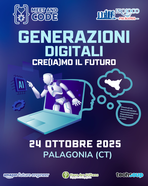 Generazioni Digitali: Cre(IA)mo il Futuro" è un evento ideato dalla Pro Loco Palagonia APS per avvicinare giovani e anziani all’uso consapevole e creativo dell’Intelligenza Artificiale Generativa. L’iniziativa prevede un laboratorio intergenerazionale, dove i partecipanti apprenderanno i concetti base dell’IA generativa e sperimenteranno strumenti innovativi come ChatGPT e DALL·E, capaci di produrre testi, immagini e altri contenuti a partire da input creativi.