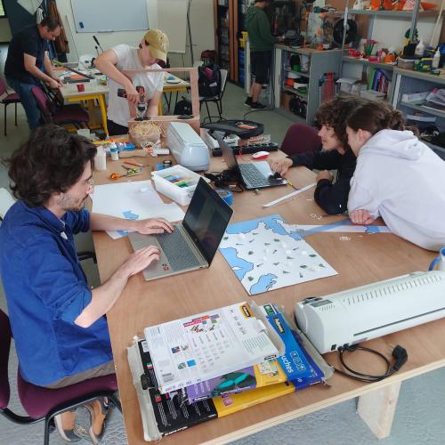 Une fois l’activité lancée, les équipes ont la journée pour créer leur jeu avec les outils présents dans le FabLab.
