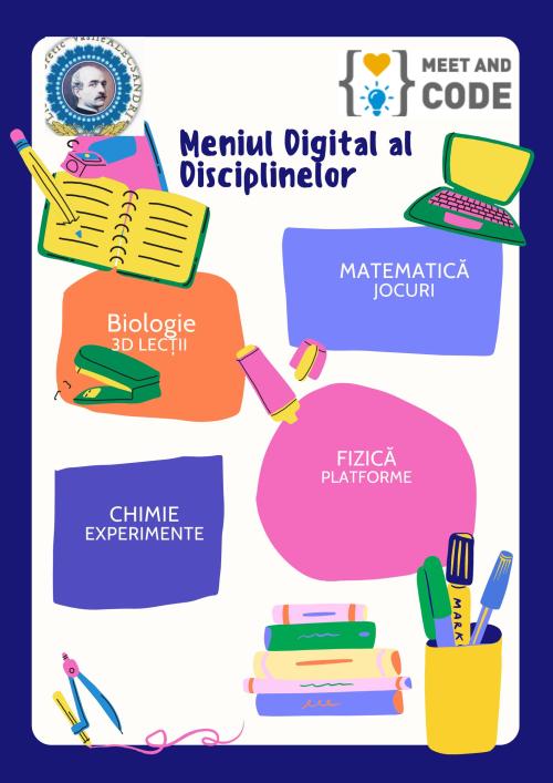 - Azi în Meniu- cunoașterea participanților, cunoașterea platformei Meet and Code prin metoda masă rotundă și anunț pe FB, profilul liceului