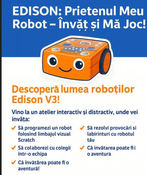 Copiii vor lucra în echipe de 3-4 și vor folosi 6 roboți Edison V3, programați prin limbajul vizual Scratch. Fiecare echipă va avea sarcina de a „învăța” robotul să navigheze printr-un labirint, să evite obstacole și să execute misiuni simple. Activitățile vor fi structurate gradual – de la mișcări de bază la rezolvarea unor provocări creative.